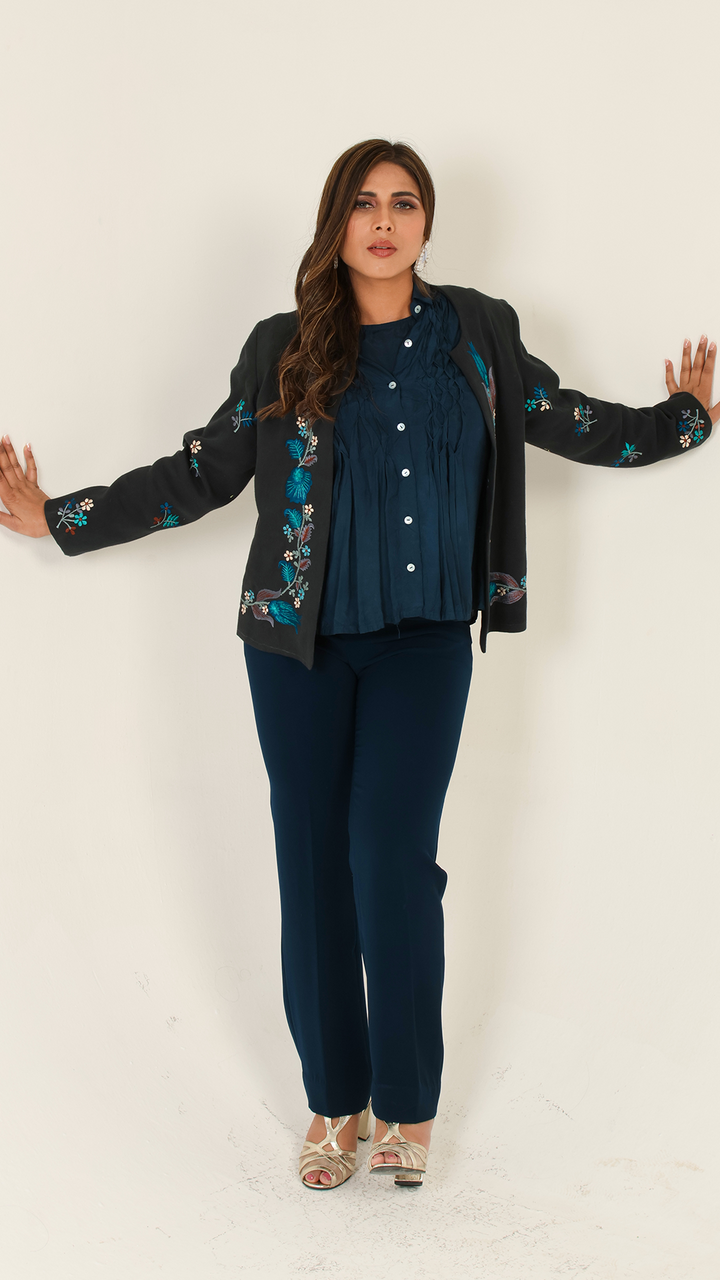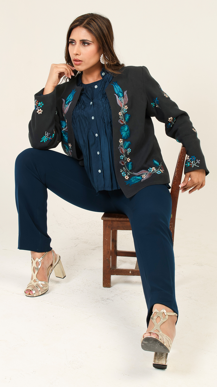 Pair it with your favorite skirt, trousers, or traditional wear – this jacket brings a fusion of ethnic charm and modern flair.
